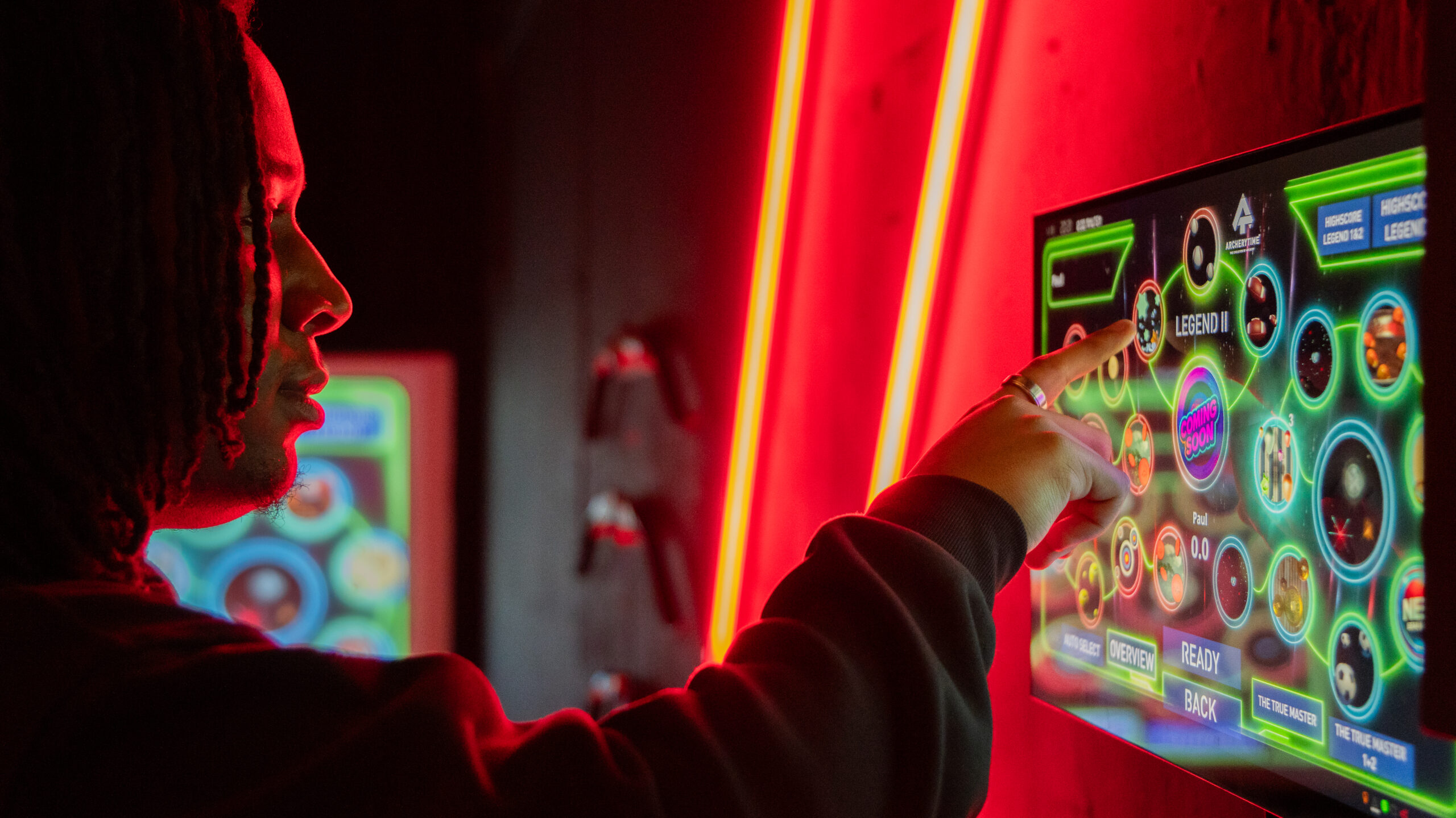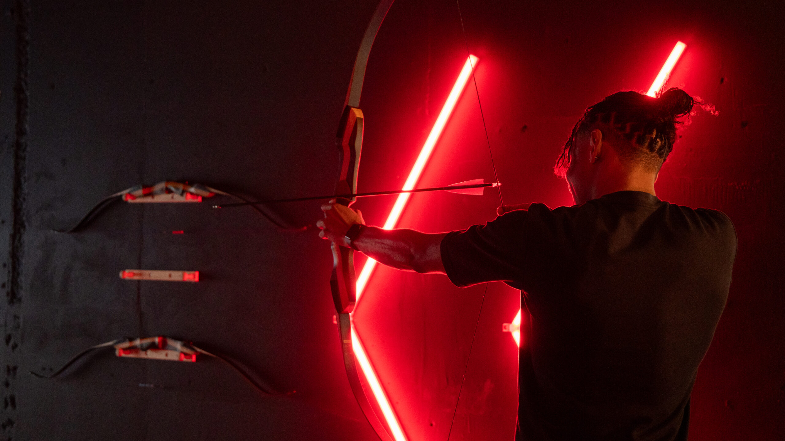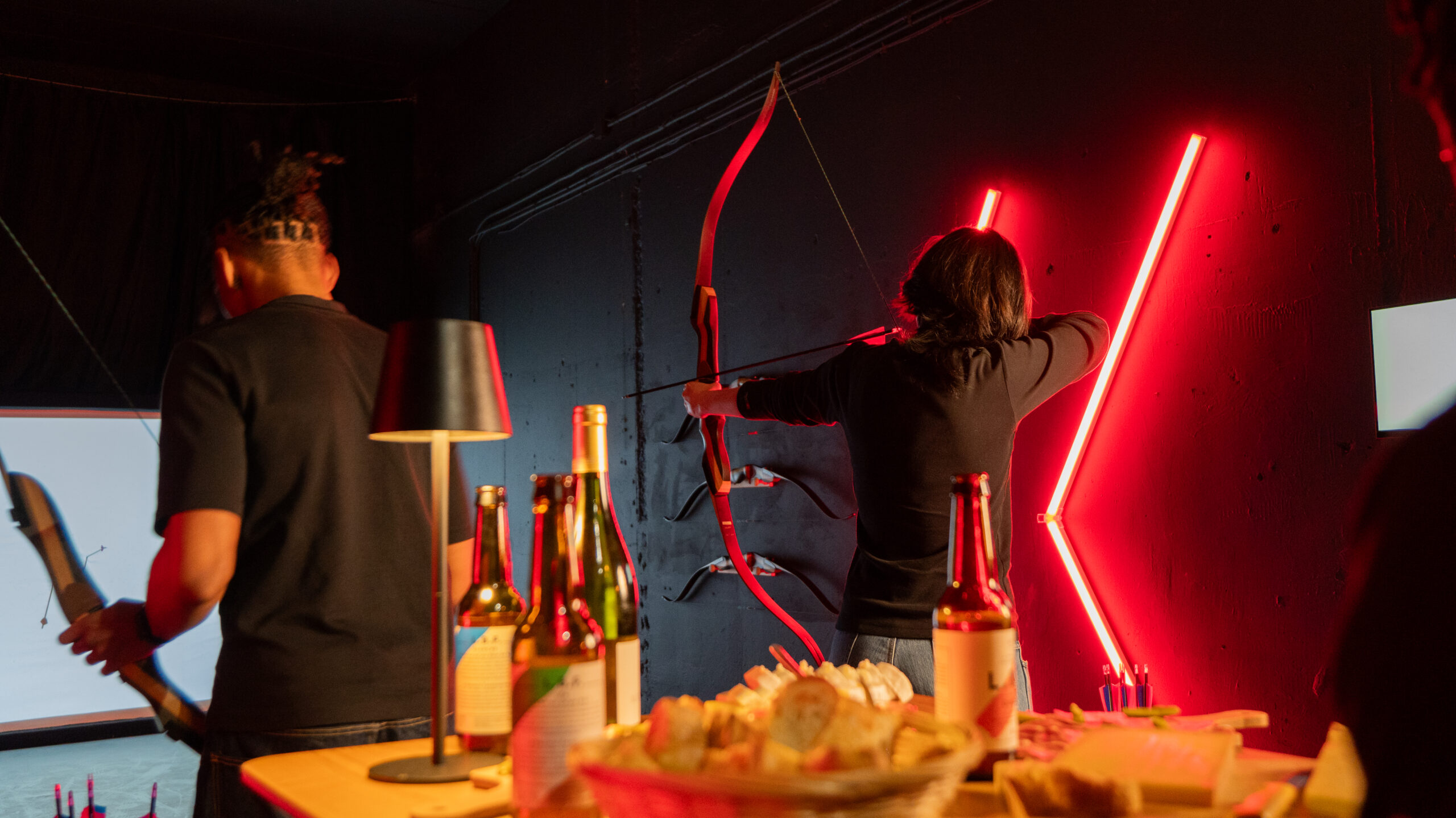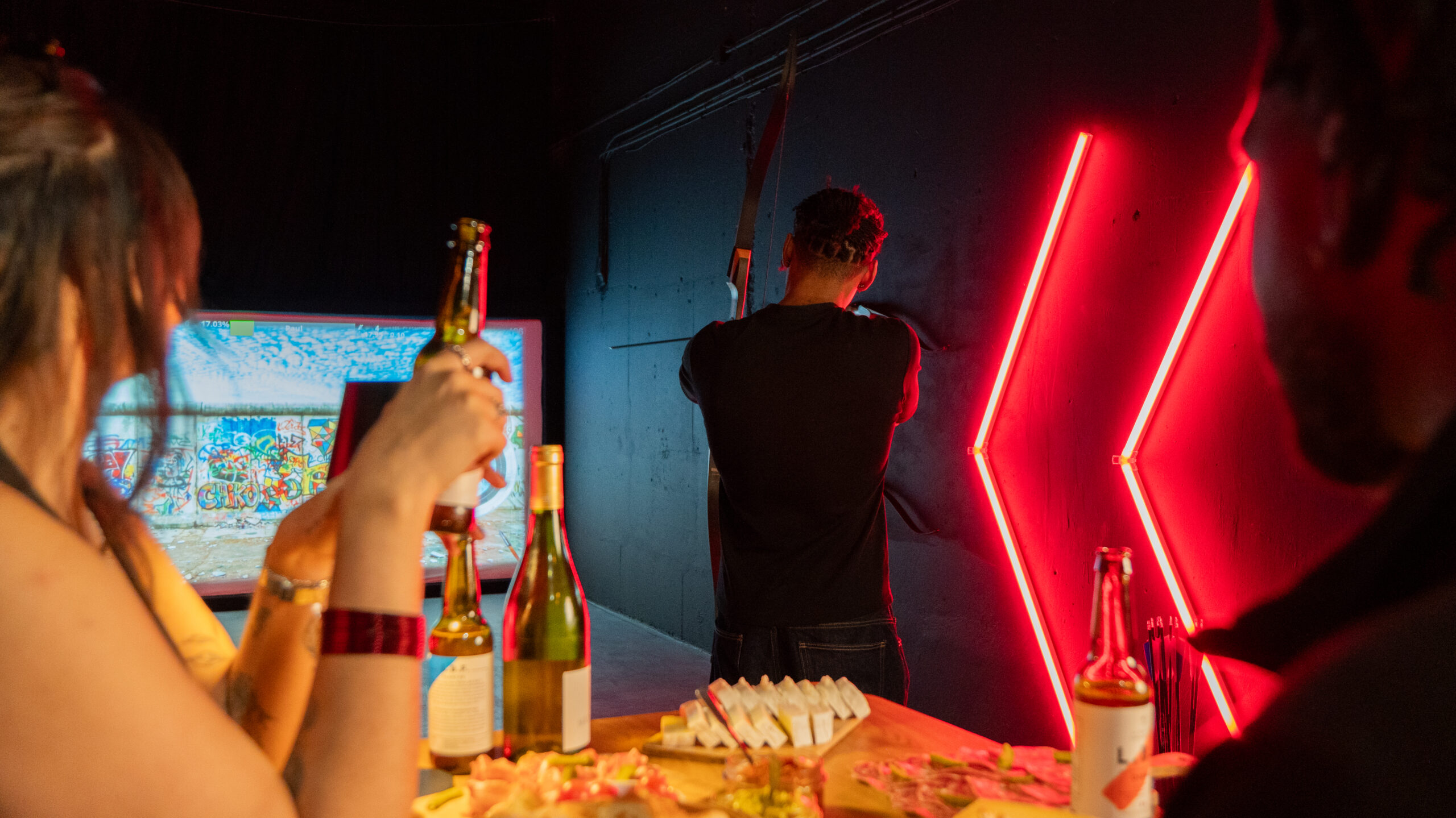 Vous tirez avec de vrais arcs et de vraies flèches — mais chaque impact est détecté en temps réel sur un mur interactif avec scoring en direct. Résultat : une expérience beaucoup plus dynamique, engageante et fun qu'un stand de tir classique.